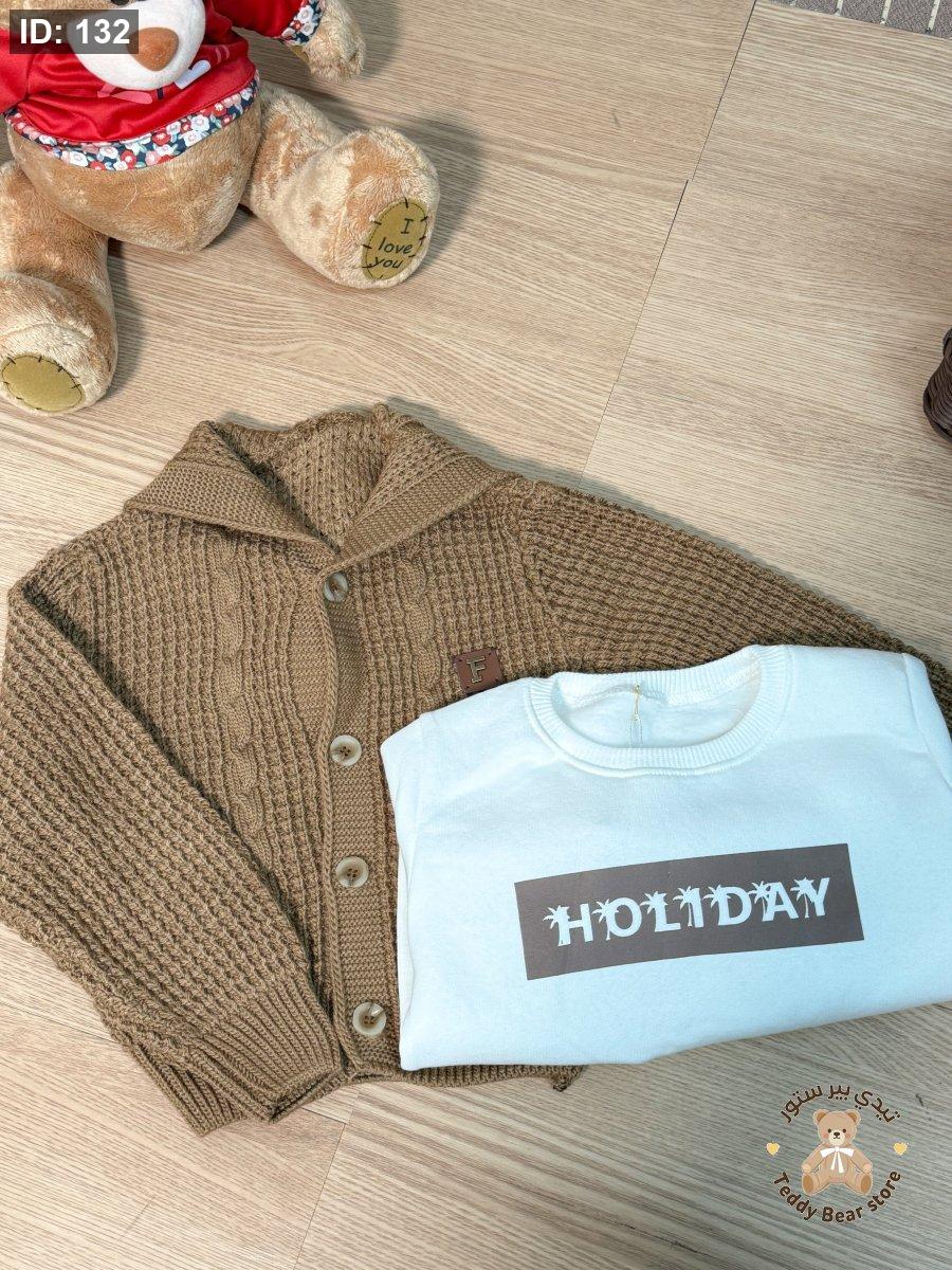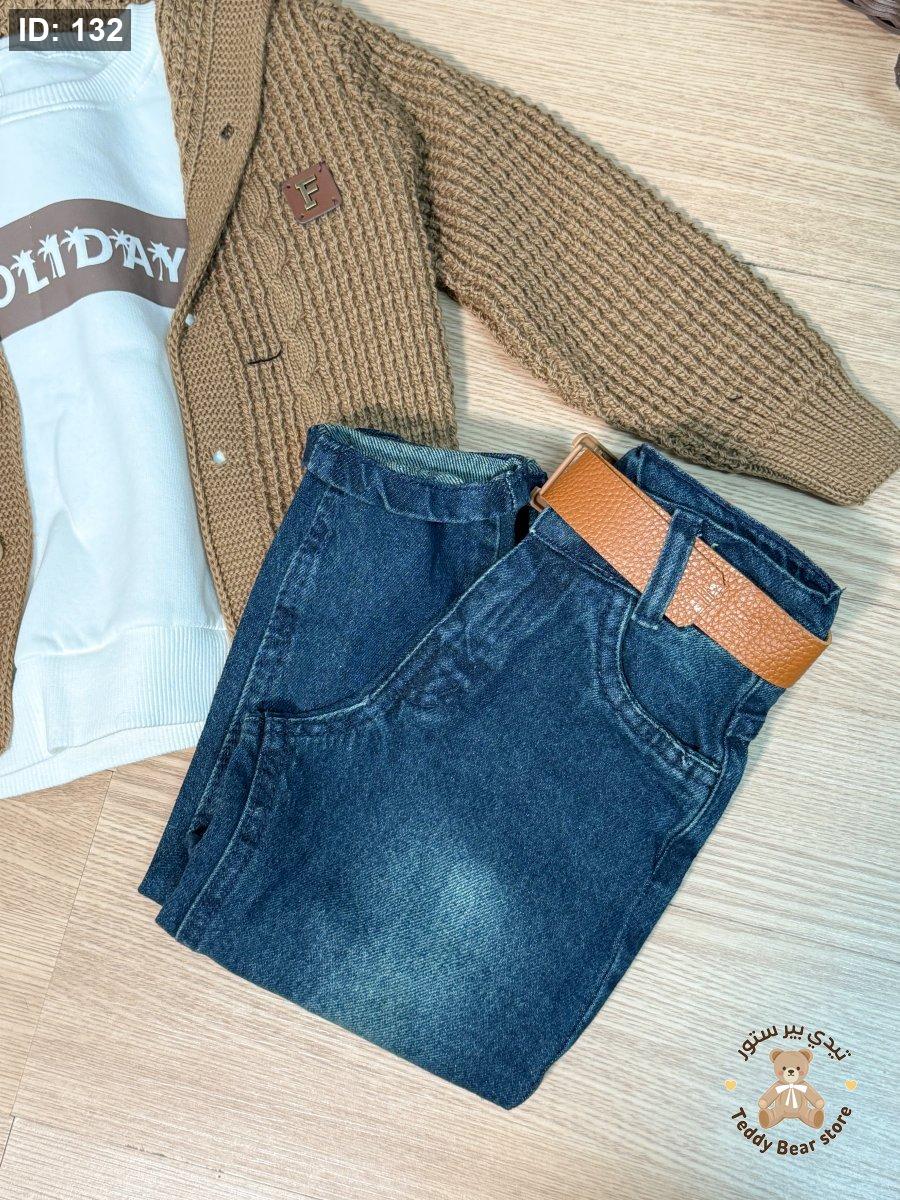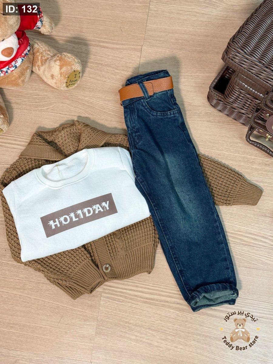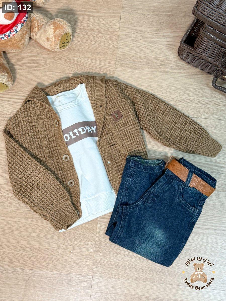 طقم 3 قطع جكيت صوف + بلوزة مبطنة + بنطلون جينز