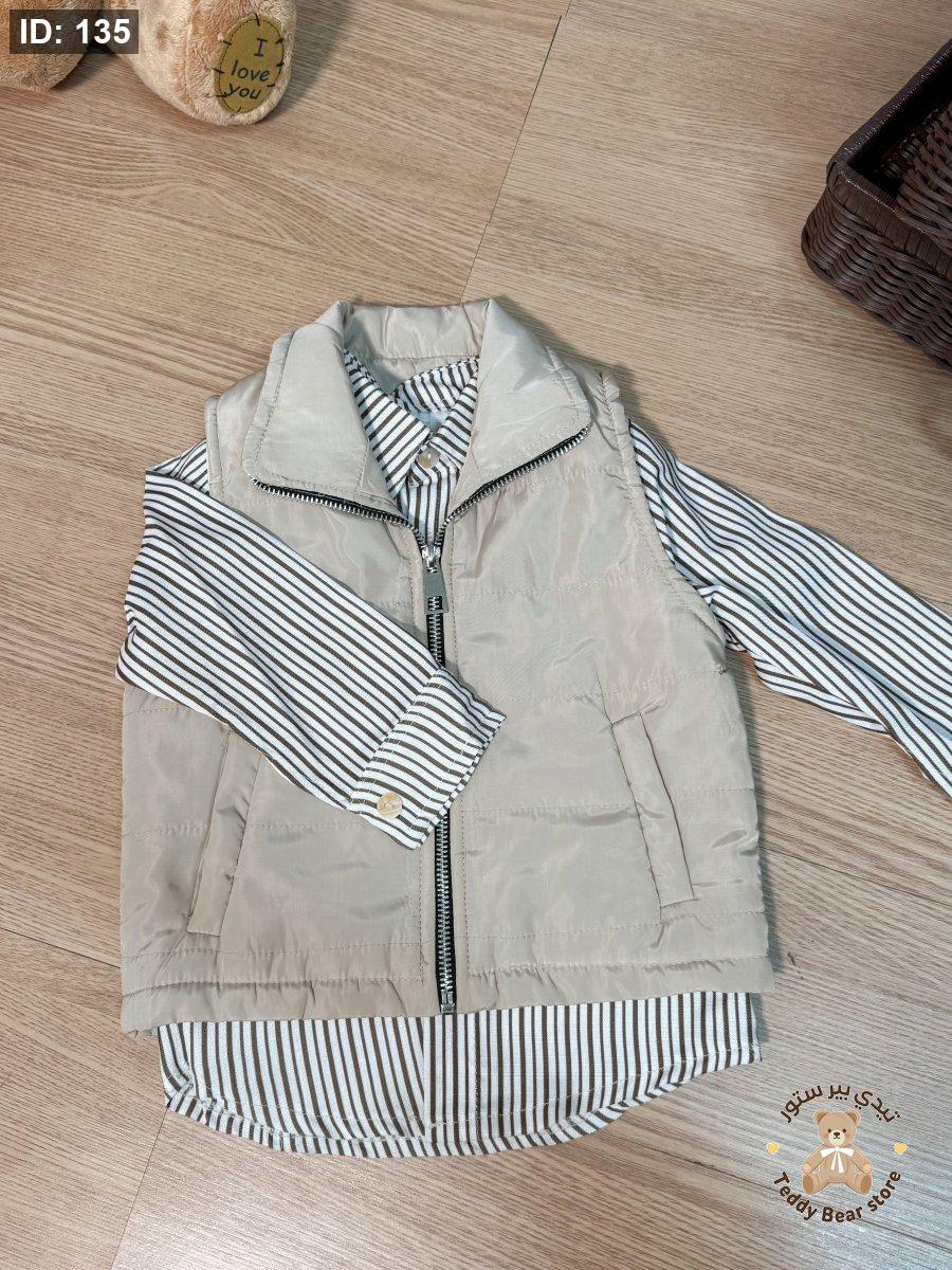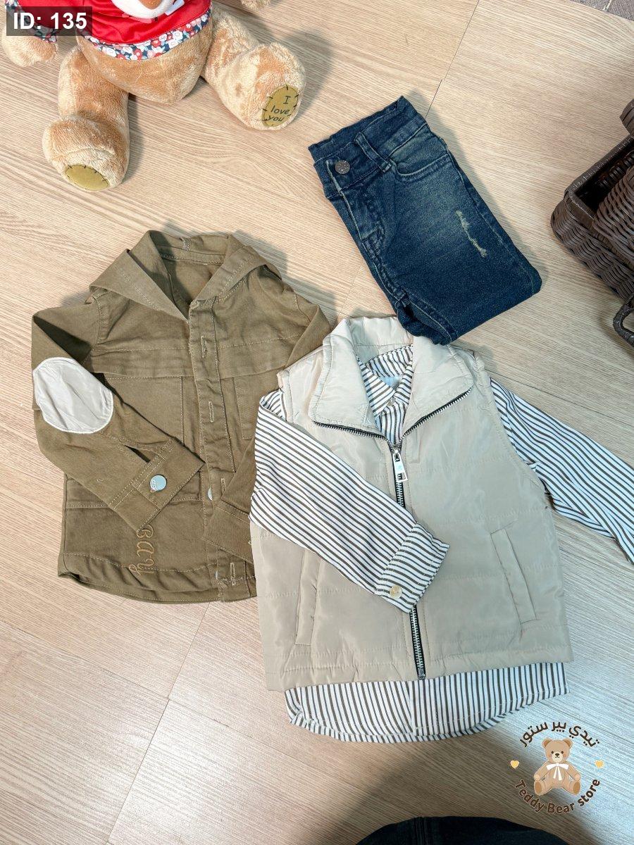 طقم 4 قطع (بنطلون + جكيت + قميص + ڤيست) بني