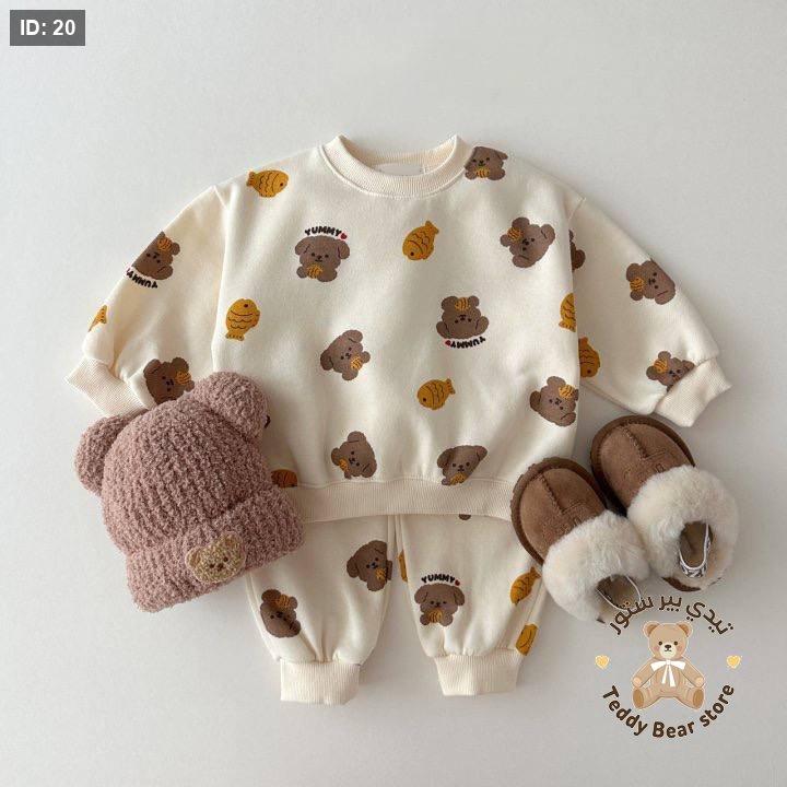 طقم بلوزة وبنطلون أبيض رسمات دباديب