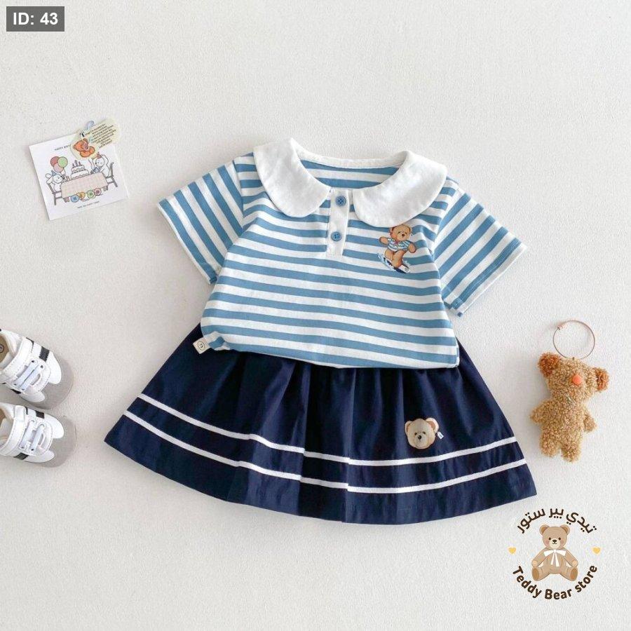 طقم تنورة كحلي وبلوزة مخططة